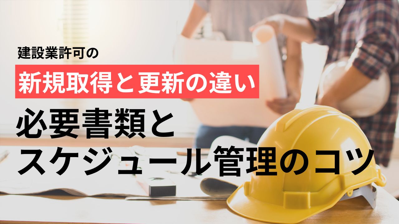 建設業許可の新規取得と更新は、必要書類・審査内容・準備期間が大きく異なります。